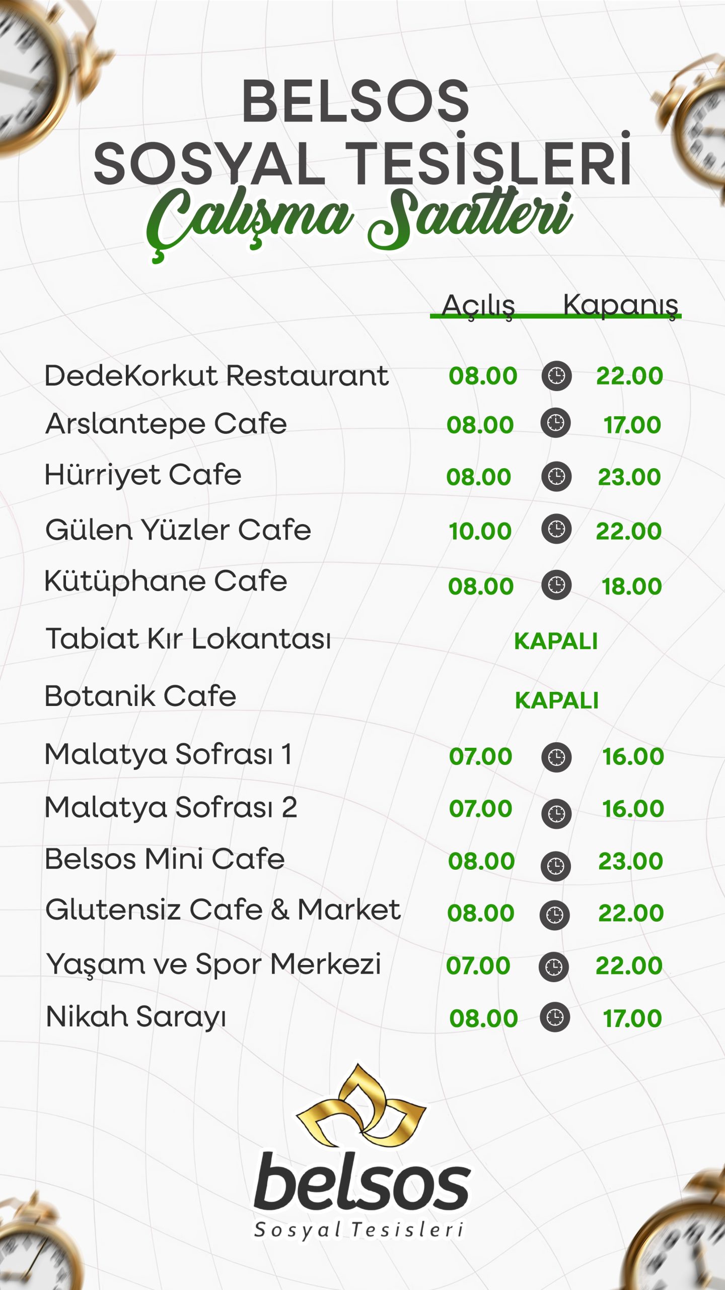 Malatya BELSOS, Malatya Büyükşehir Belediyesi’ne bağlı sosyal tesisler işletmesi olduğu için genellikle uygun fiyatlarla hizmet sunmaktadır.