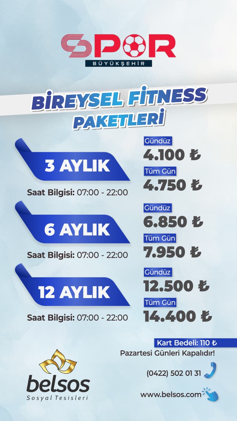 * Bireysel Fitness: Gündüz veya Tüm Gün seçenekleriyle esnek çalışma saatleri.
