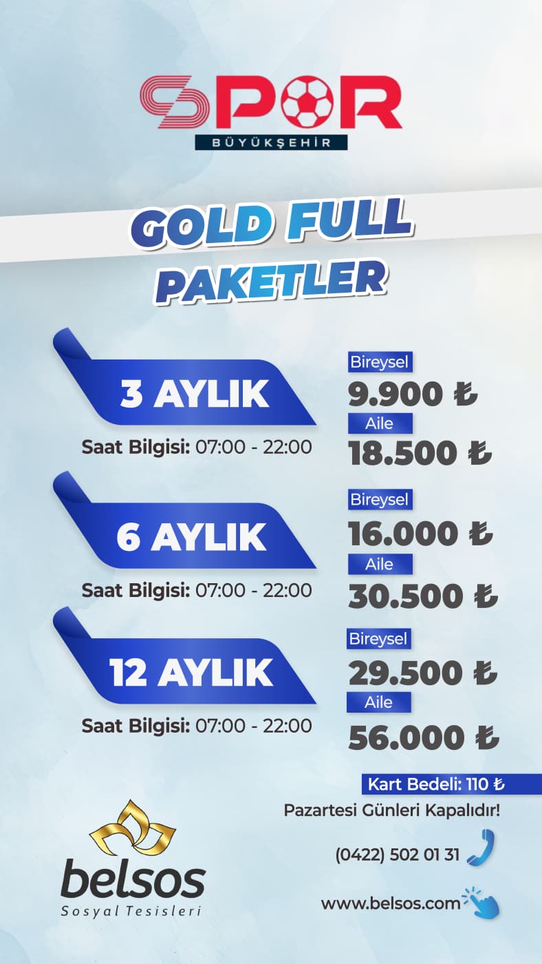 * Gold Full Paketler: Fitness ve SPA hizmetlerinin tamamını kapsayan, 12 aya kadar uzanan en kapsamlı ayrıcalıklı paketimizdir.