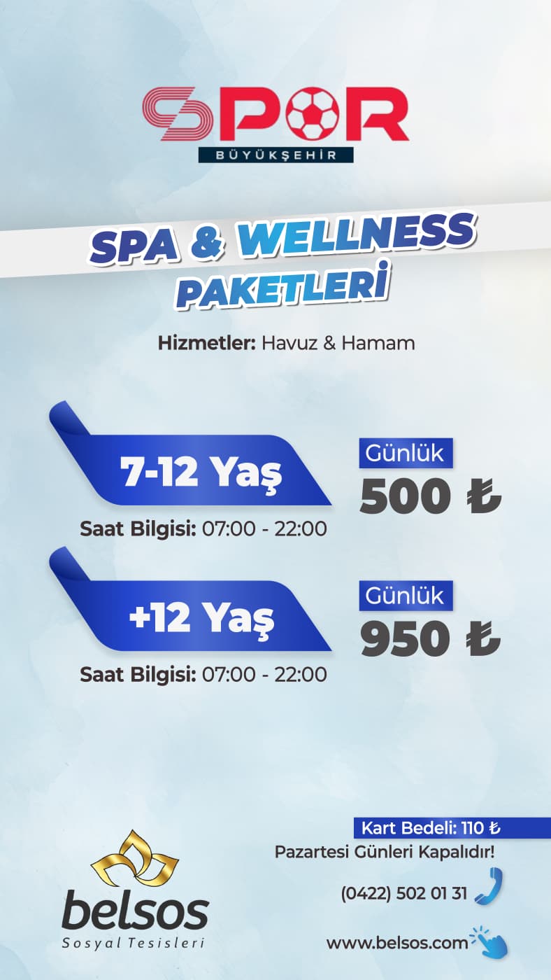 * Günlük Kullanım: Üye olmadan da havuz ve hamam hizmetlerimizden (7-12 yaş ve +12 yaş kategorilerinde) yararlanabilirsiniz.